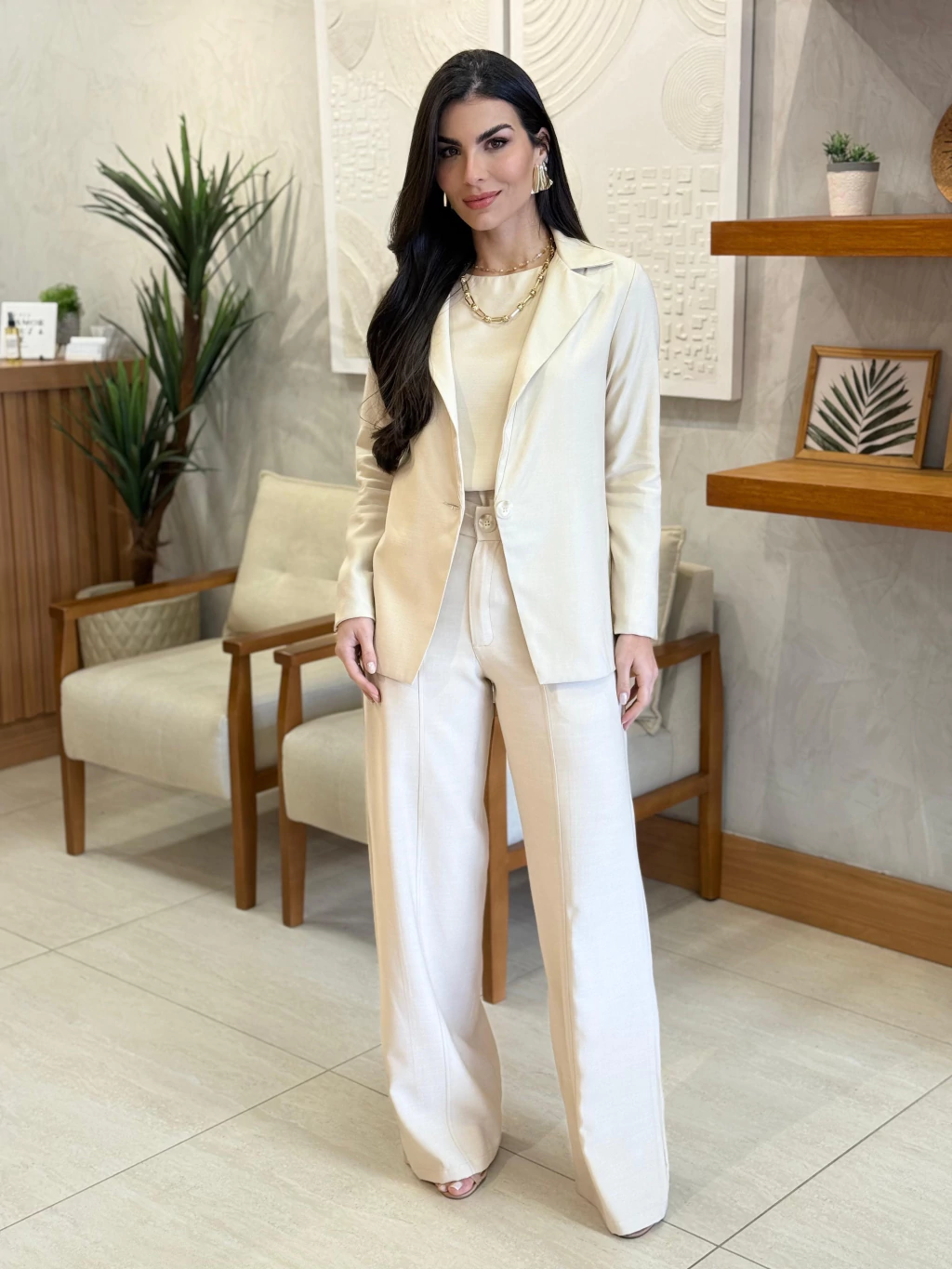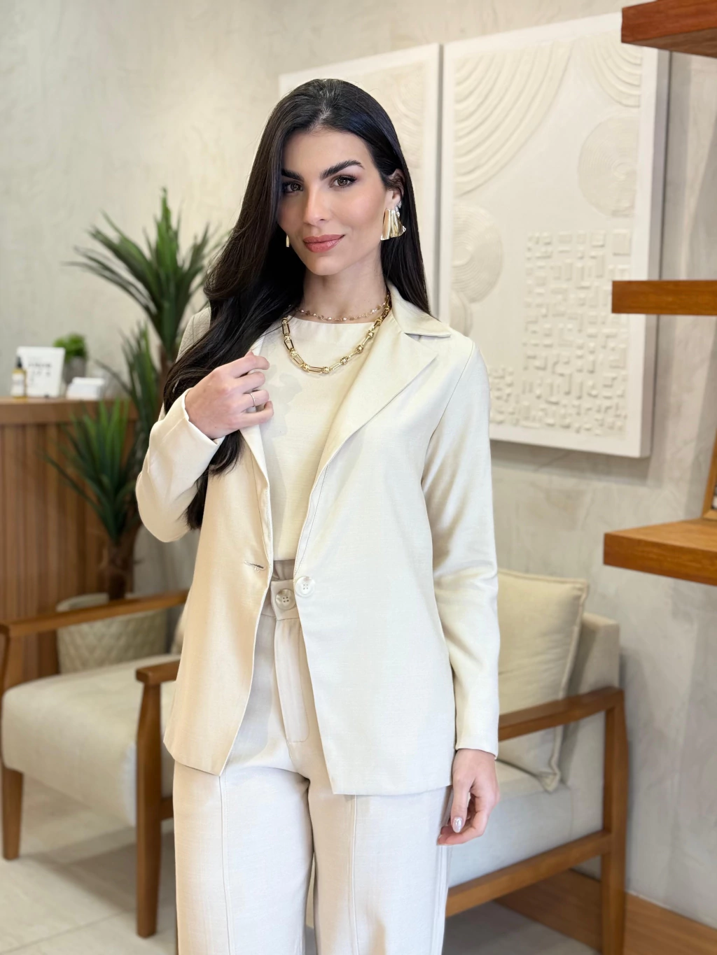 Observação: Por se tratar de um tecido natural (linho ou viscose), a peça pode apresentar leve encolhimento no comprimento após a primeira lavagem.