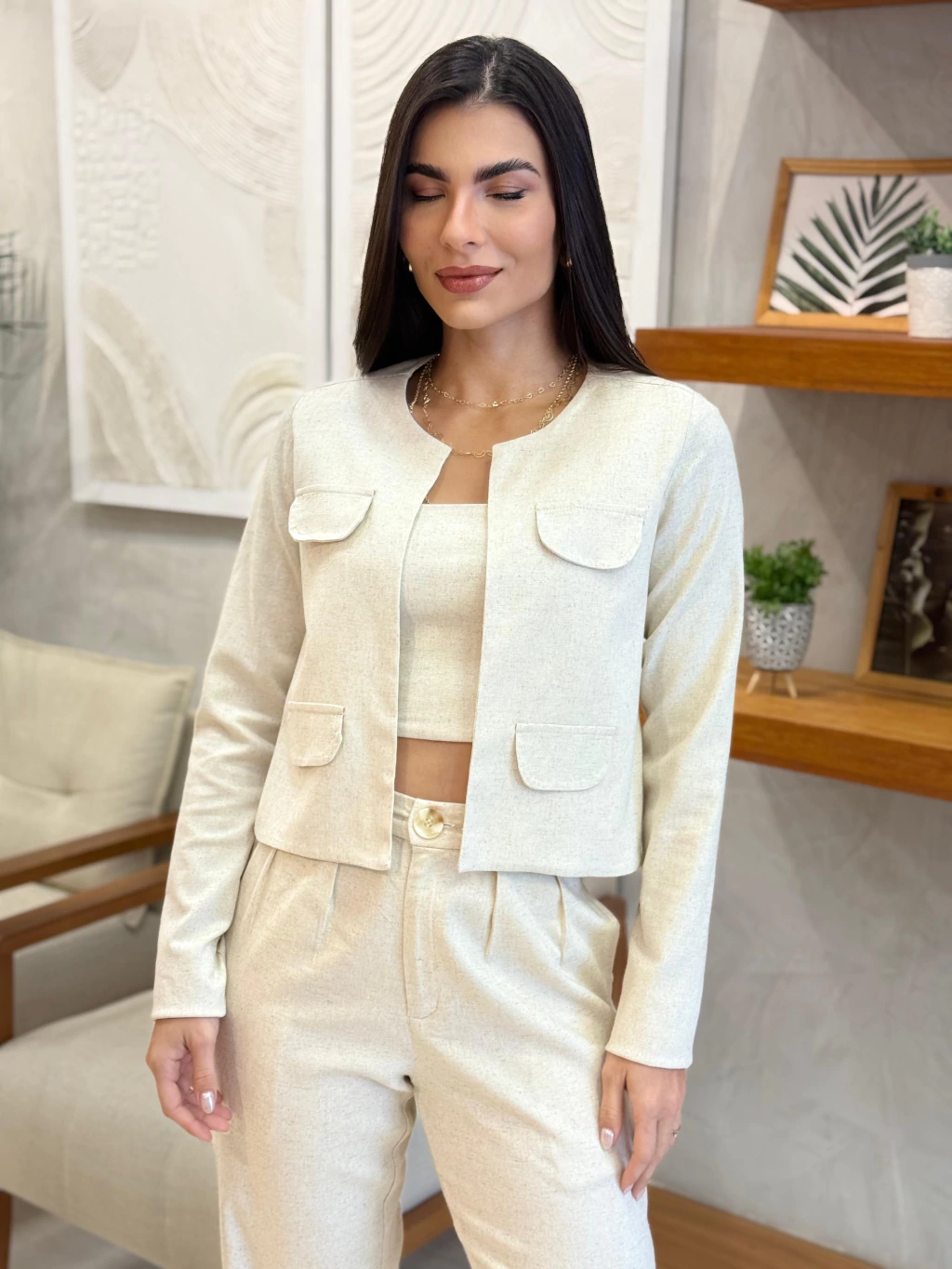 Composição: 70% Viscose 27% Linho 3% Elastano