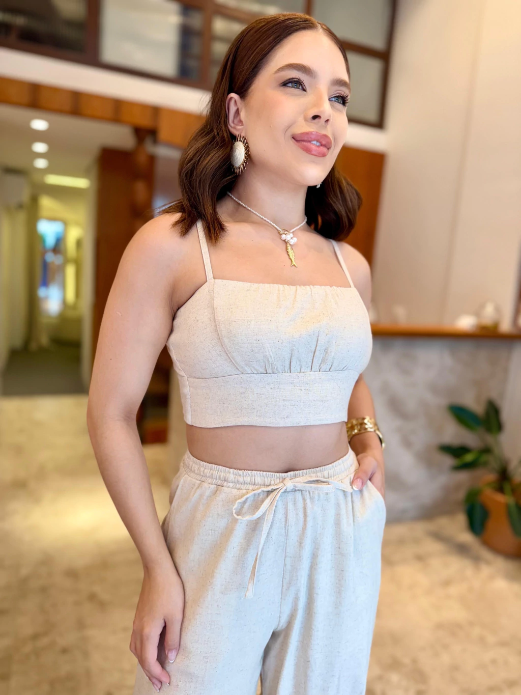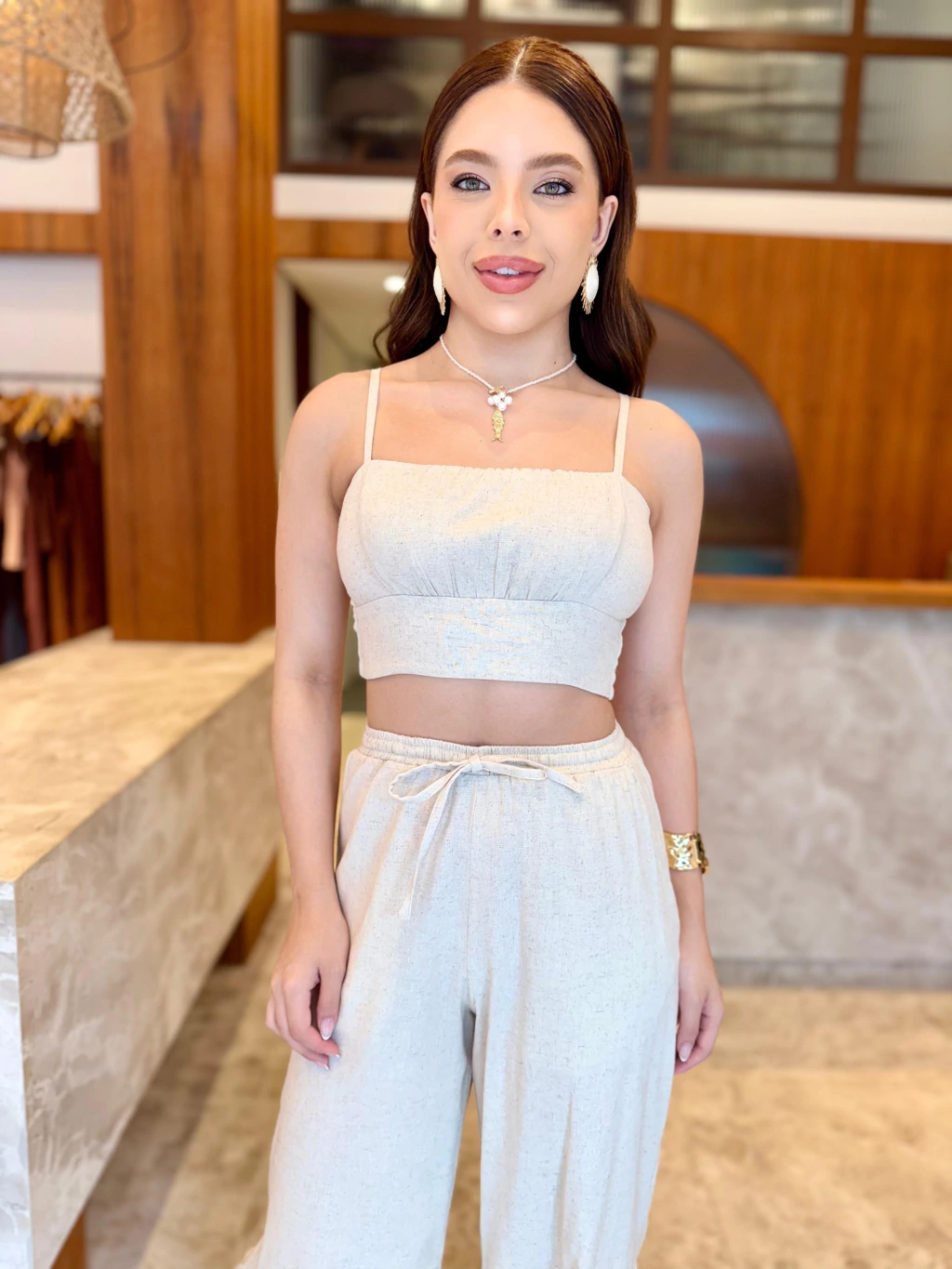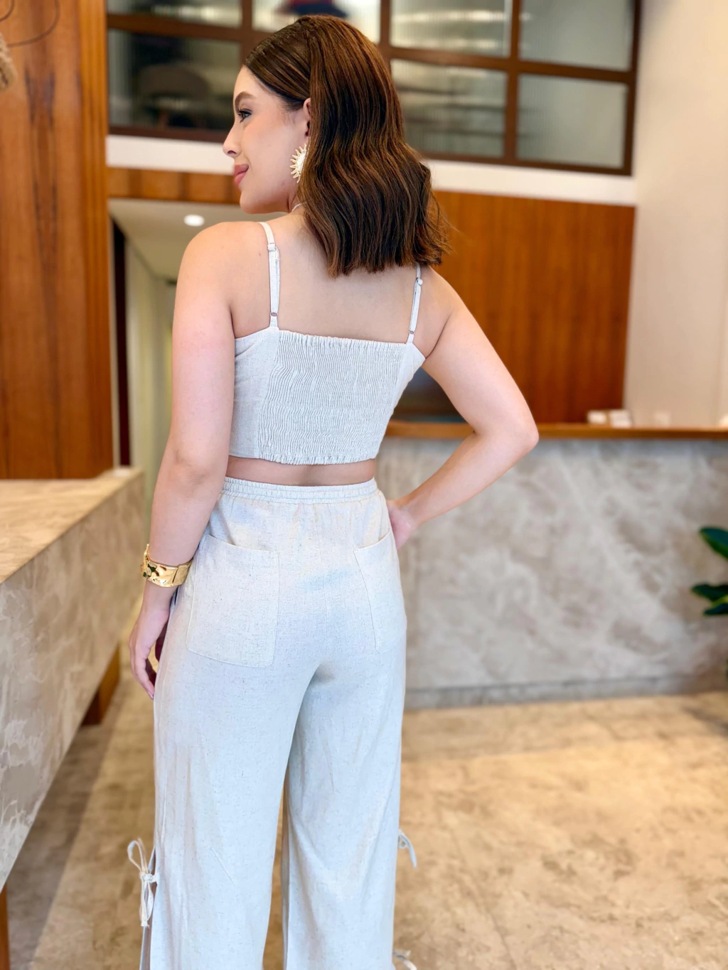 Observação: Por se tratar de um tecido natural (linho ou viscose), a peça pode apresentar leve encolhimento no comprimento após a primeira lavagem.