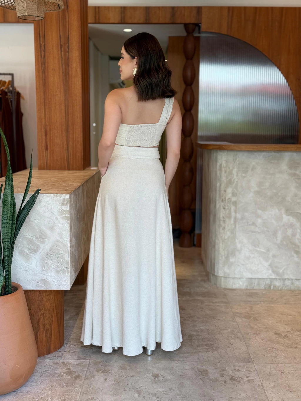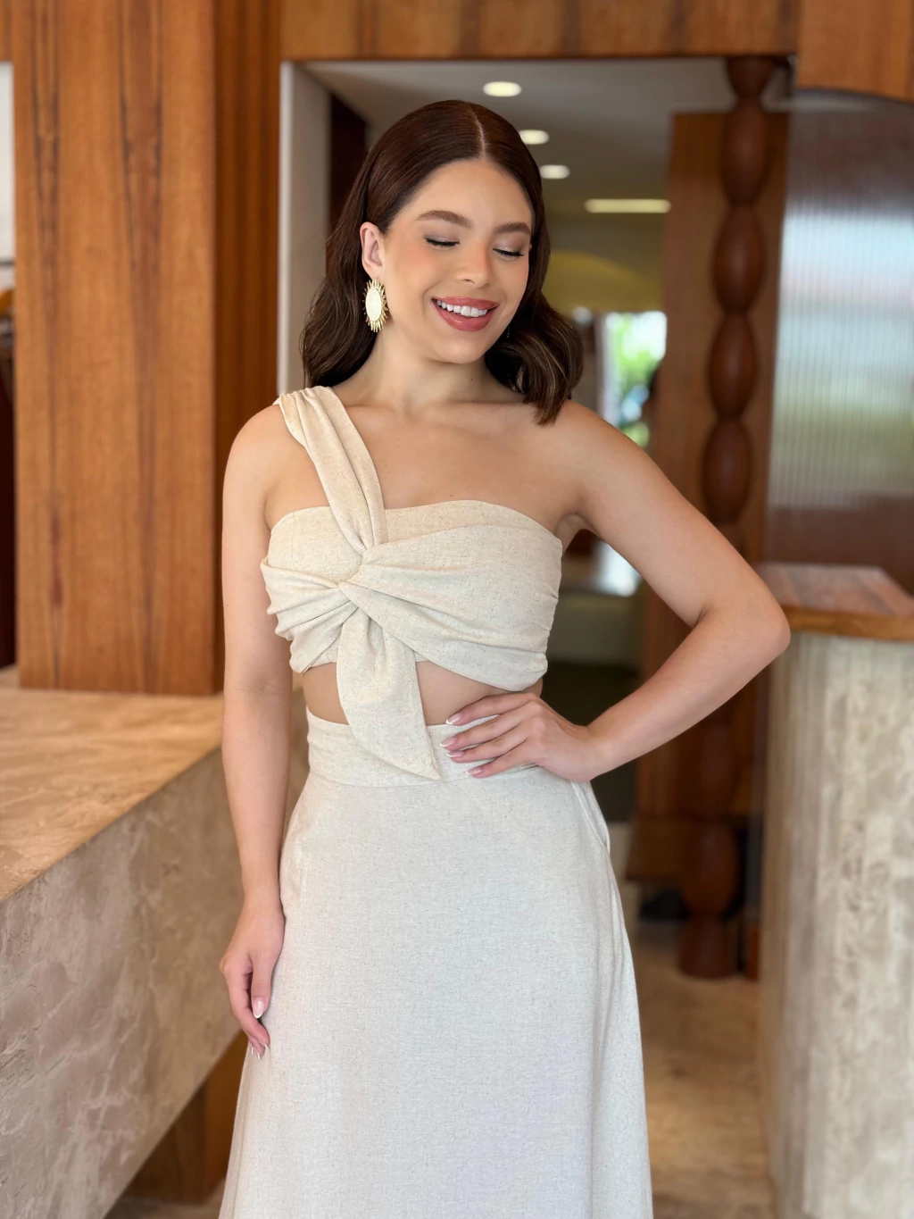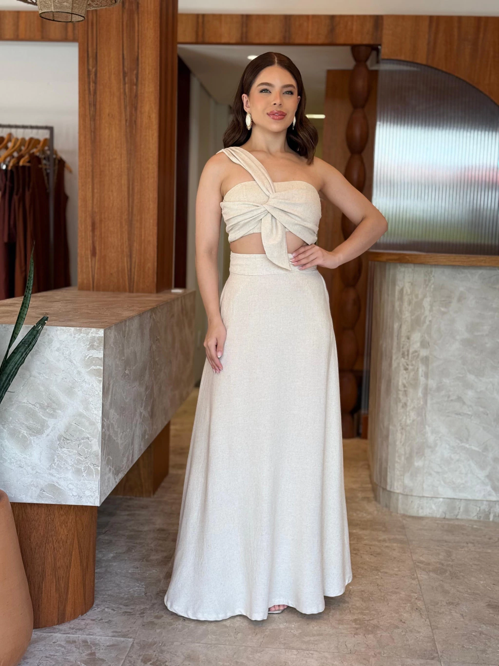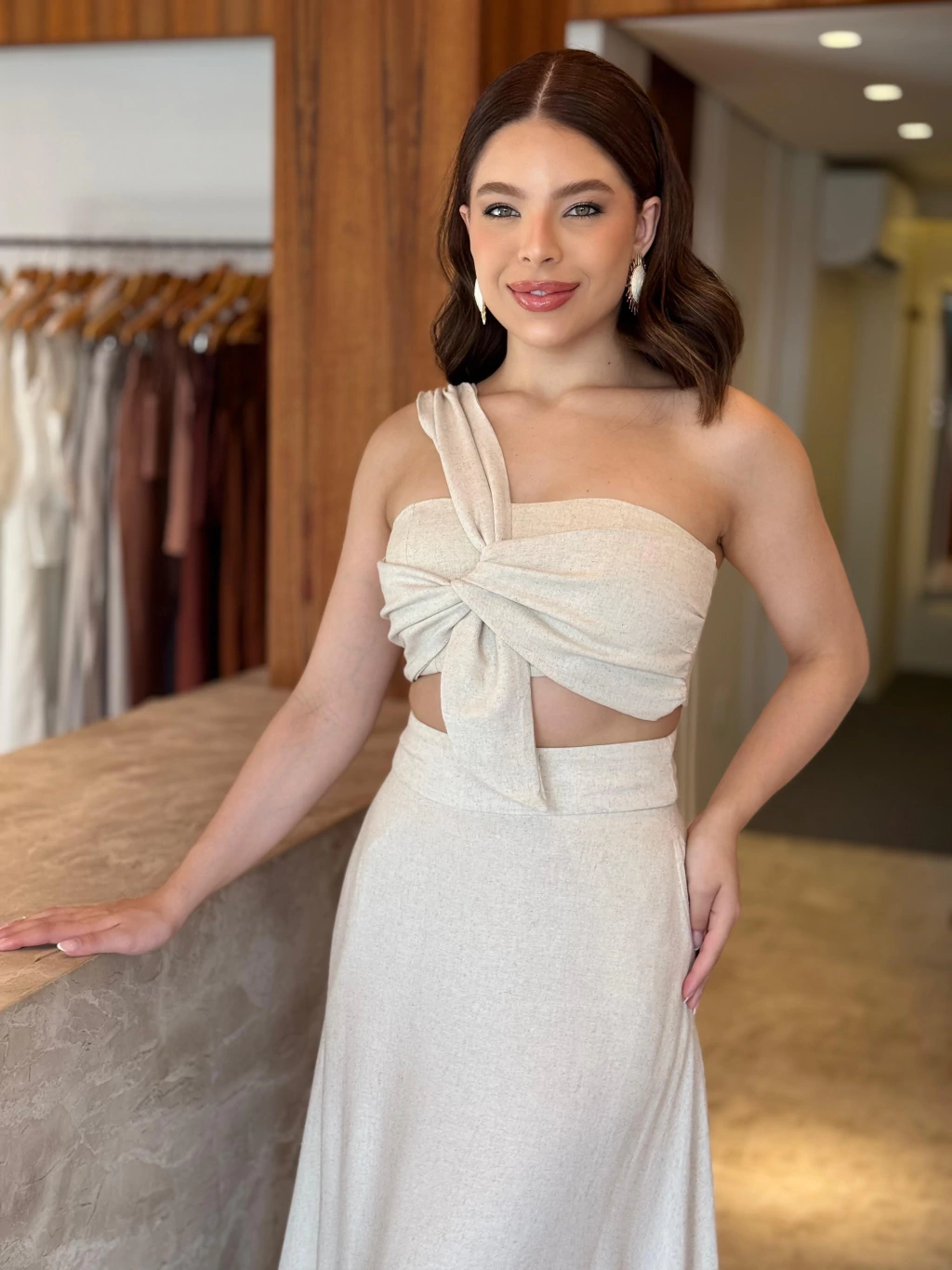 Observação: Por se tratar de um tecido natural (linho ou viscose), a peça pode apresentar leve encolhimento no comprimento após a primeira lavagem.