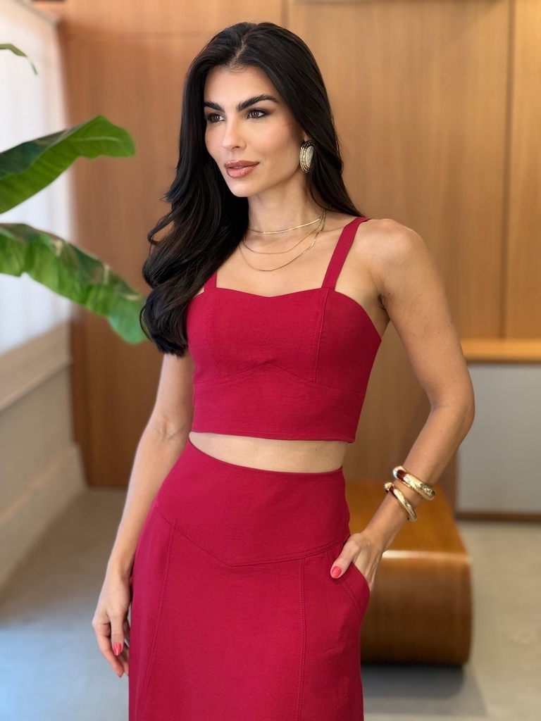 Observação: Por se tratar de um tecido natural (linho ou viscose), a peça pode apresentar leve encolhimento no comprimento após a primeira lavagem.
