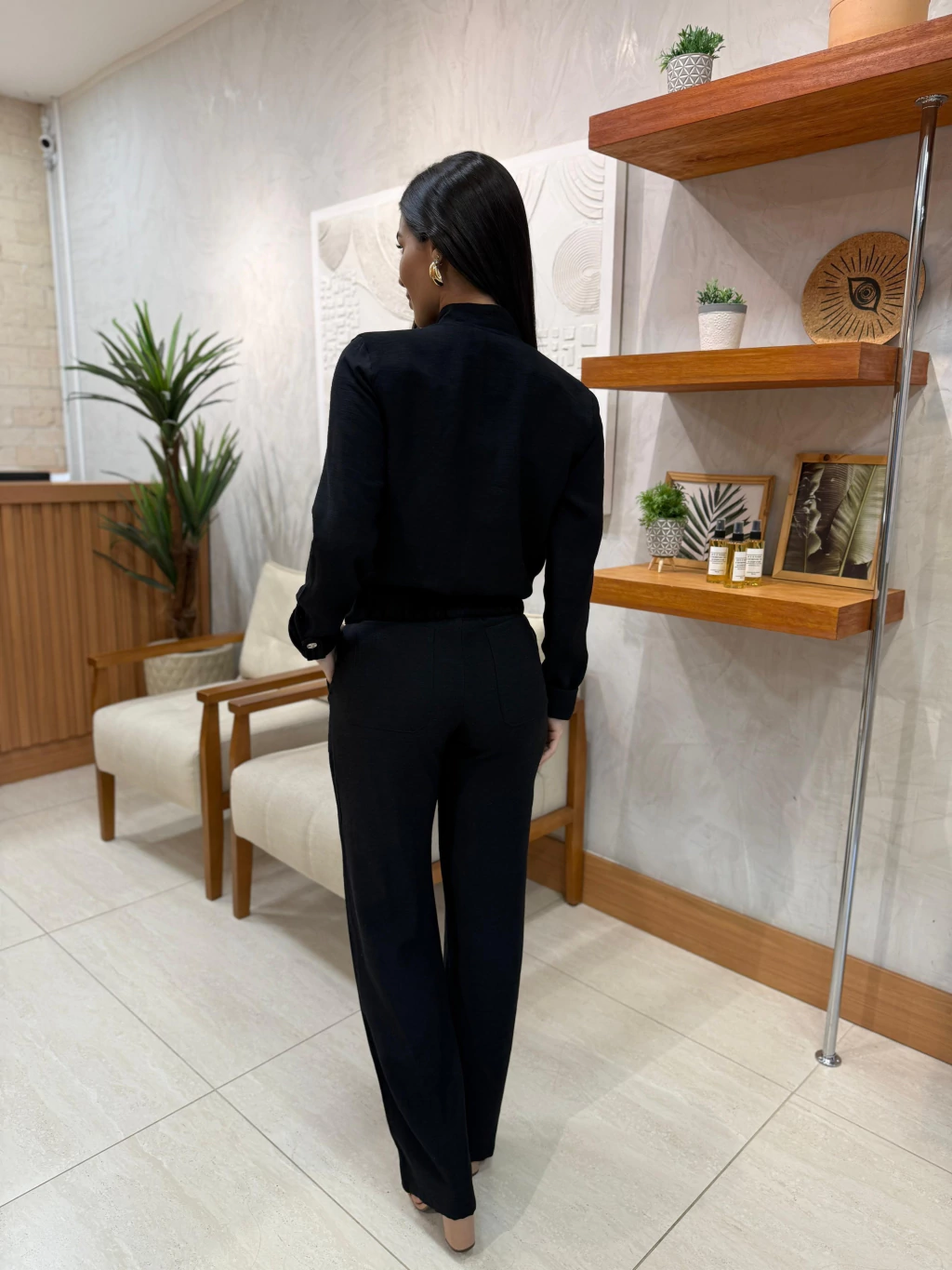 Observação: Por se tratar de um tecido natural (linho ou viscose), a peça pode apresentar leve encolhimento no comprimento após a primeira lavagem.