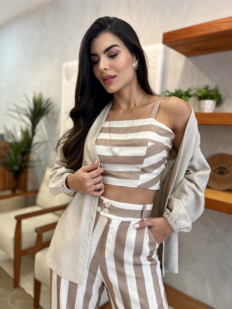 Kimono Bia é a terceira peça para acrescentar em qualquer look básico, a peça possui manga longa ampla, punho com elástico, comprimento longo e fendas laterais.