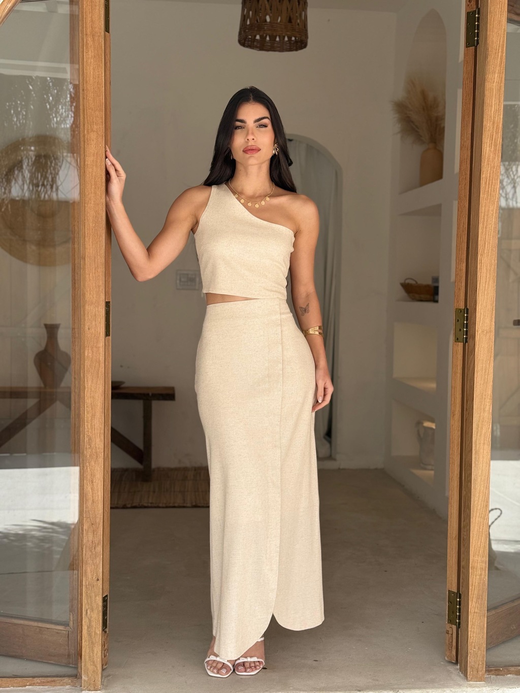 Observação: Por se tratar de um tecido natural (linho ou viscose), a peça pode apresentar leve encolhimento no comprimento após a primeira lavagem.