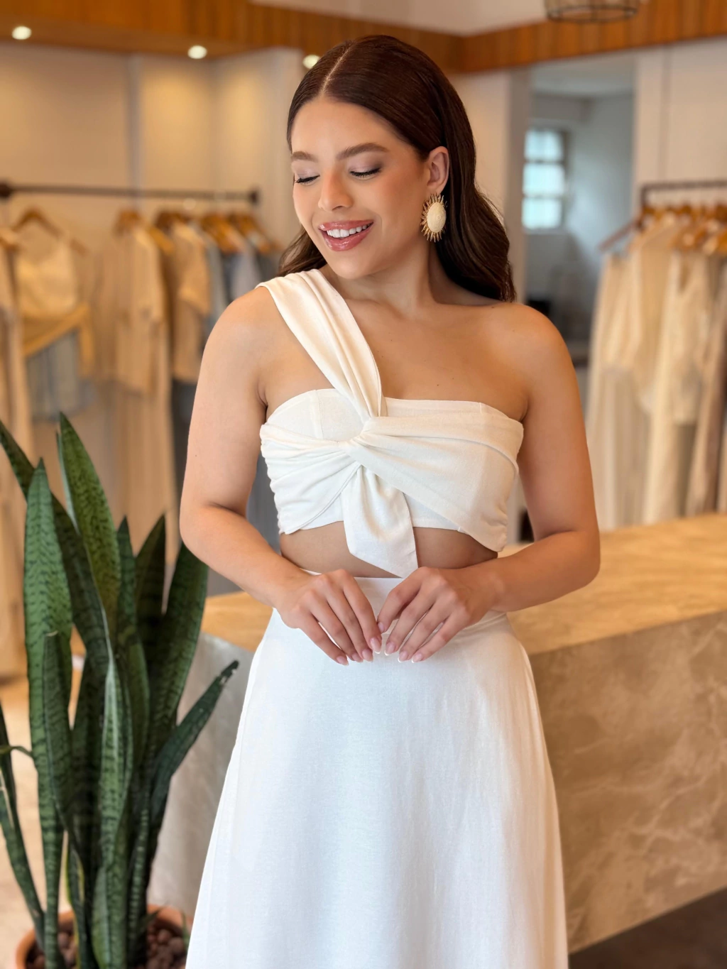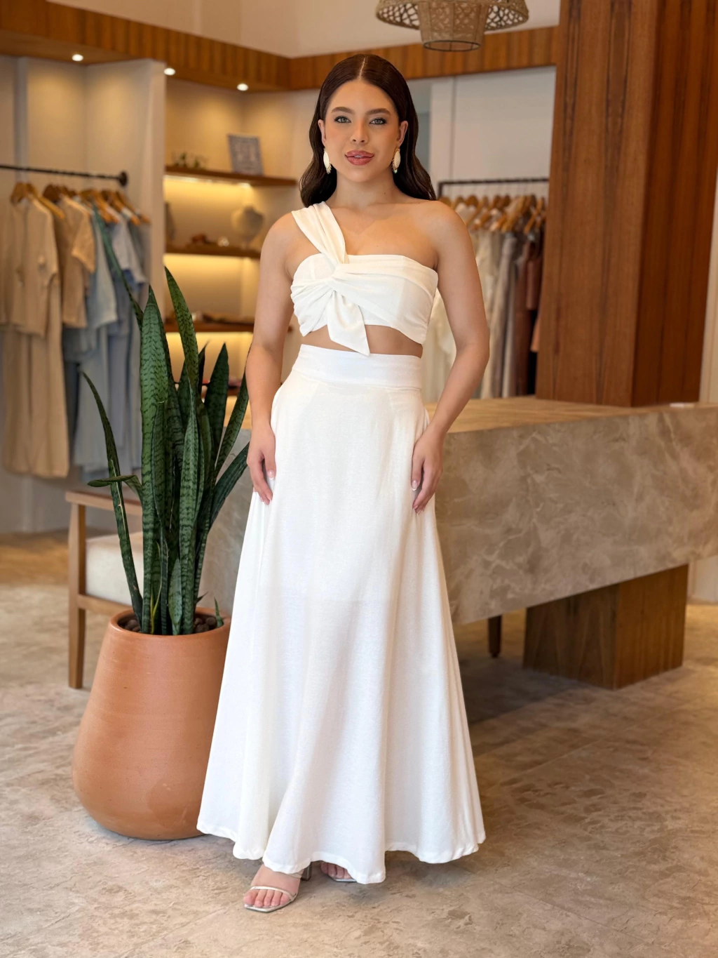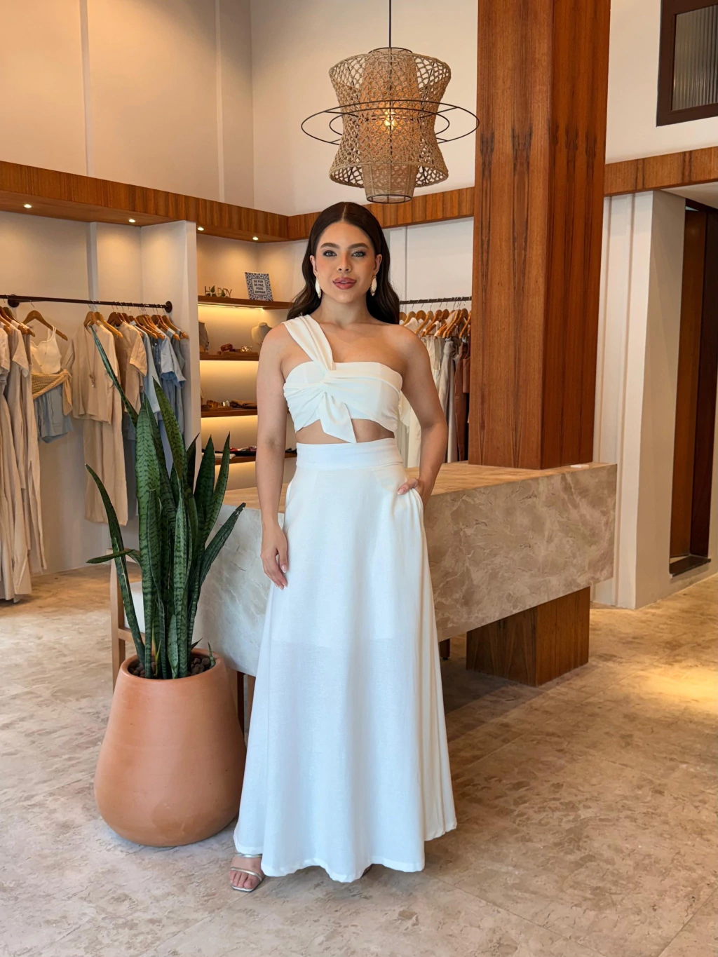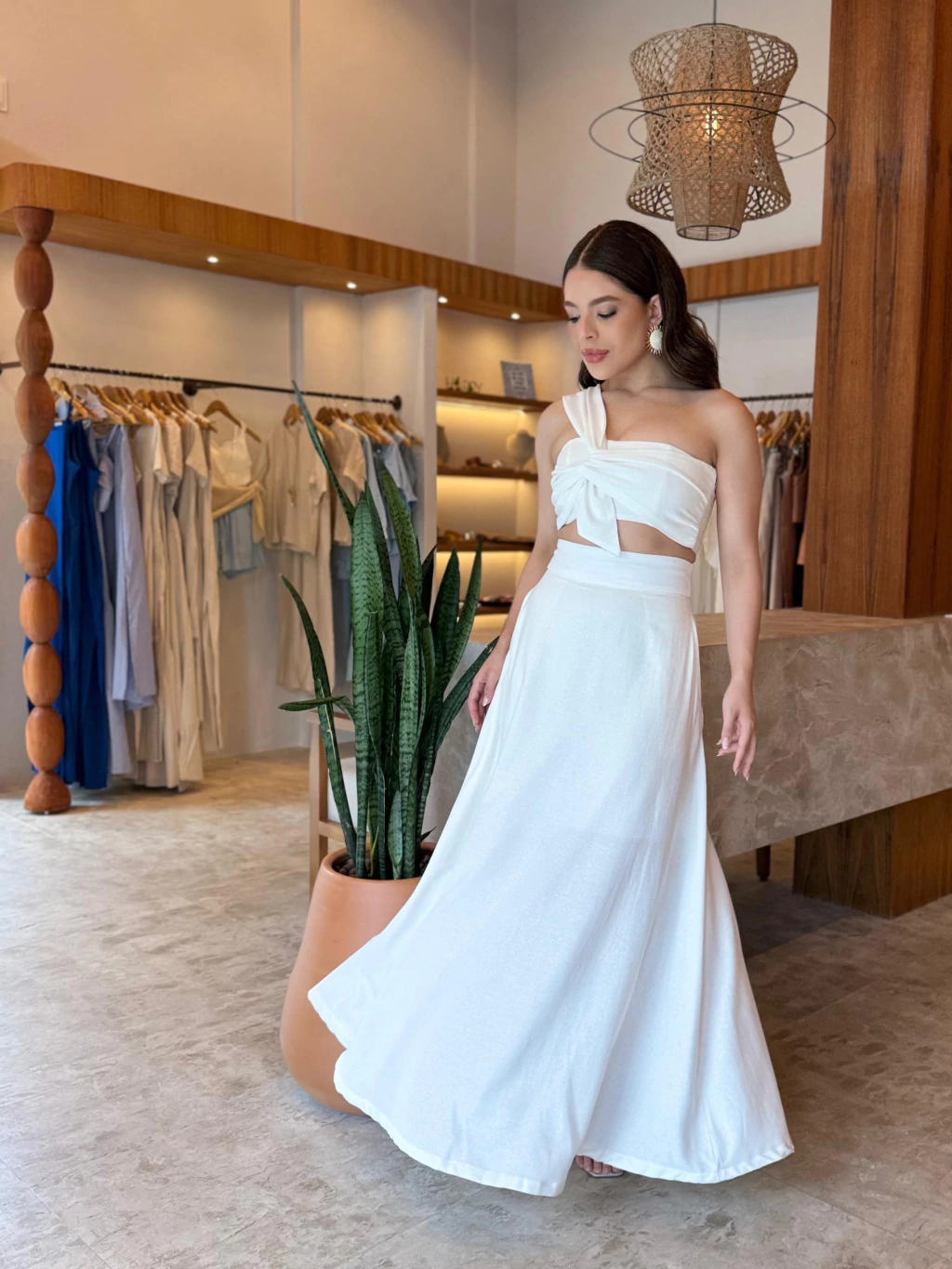 Observação: Por se tratar de um tecido natural (linho ou viscose), a peça pode apresentar leve encolhimento no comprimento após a primeira lavagem.