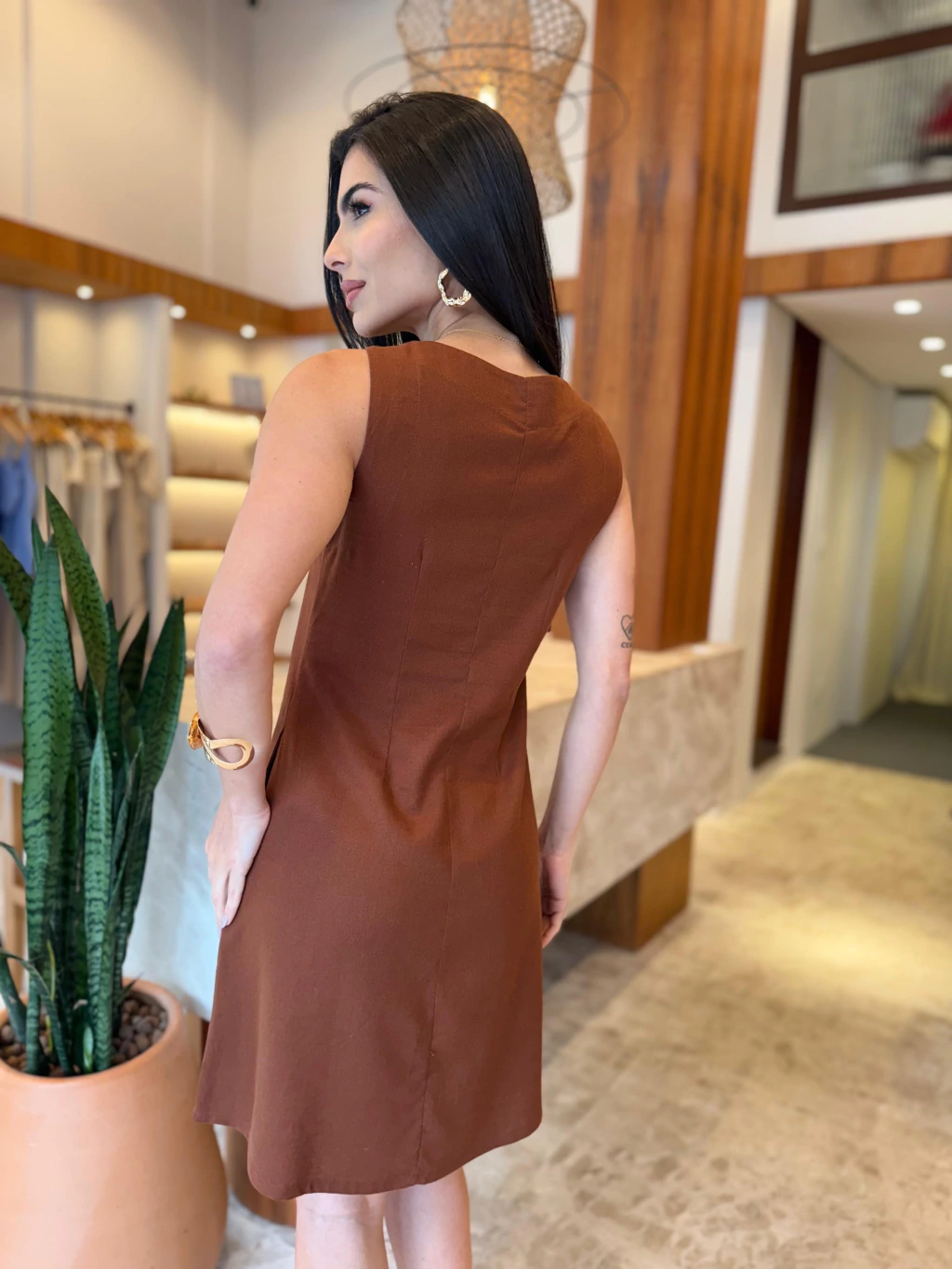 Observação: Por se tratar de um tecido natural (linho ou viscose), a peça pode apresentar leve encolhimento no comprimento após a primeira lavagem.