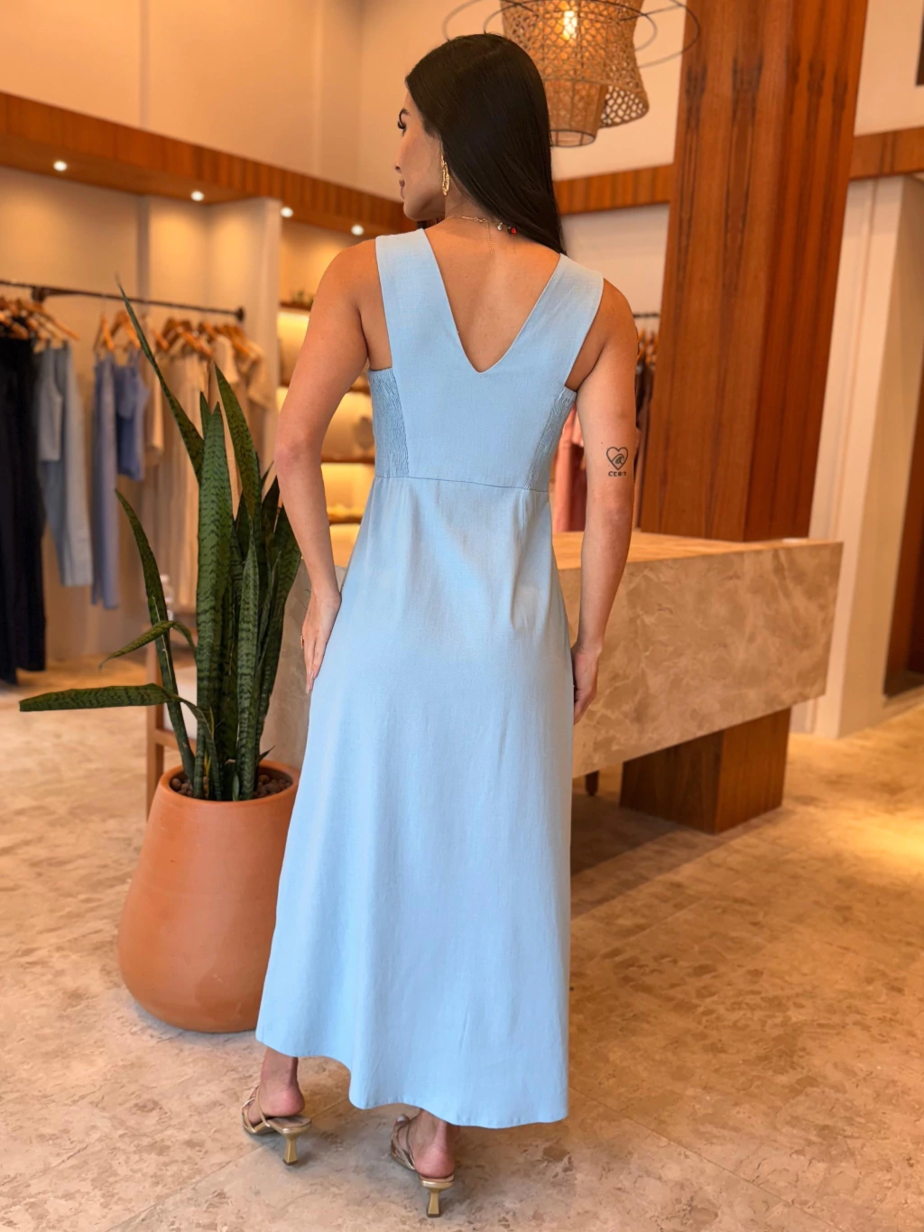 Observação: Por se tratar de um tecido natural (linho ou viscose), a peça pode apresentar leve encolhimento no comprimento após a primeira lavagem.