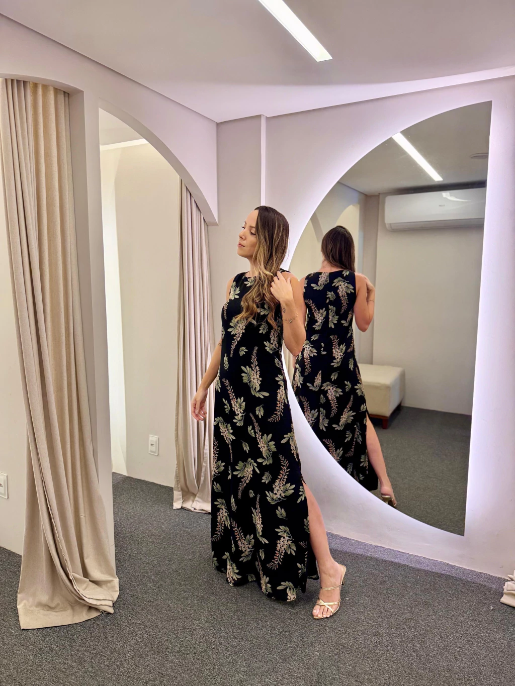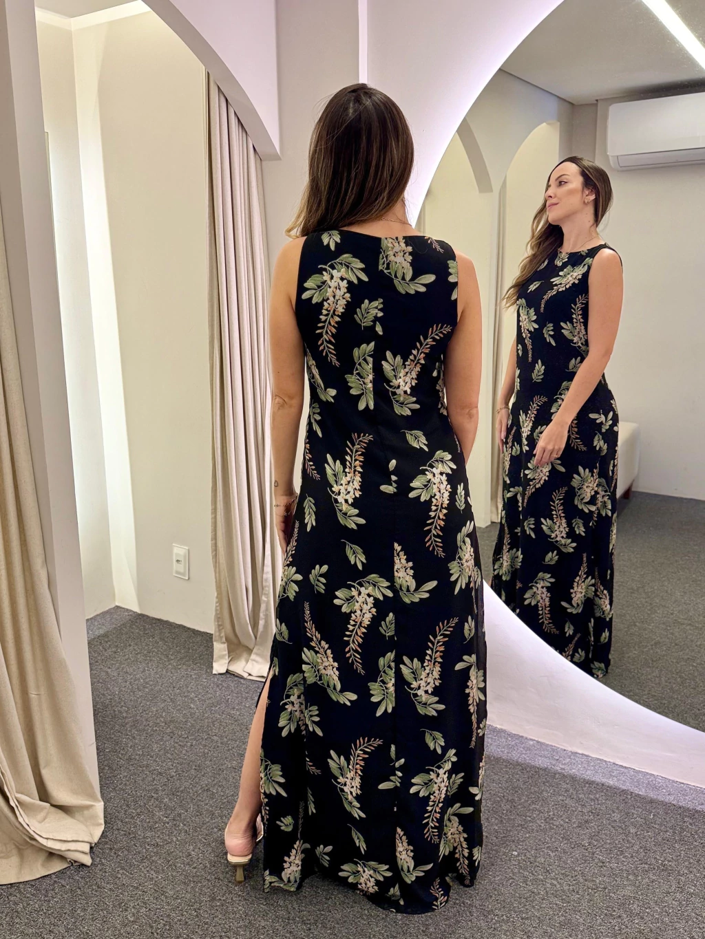 Observação: Por se tratar de um tecido natural (linho ou viscose), a peça pode apresentar leve encolhimento no comprimento após a primeira lavagem.