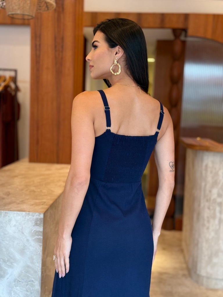 Observação: Por se tratar de um tecido natural (linho ou viscose), a peça pode apresentar leve encolhimento no comprimento após a primeira lavagem.
