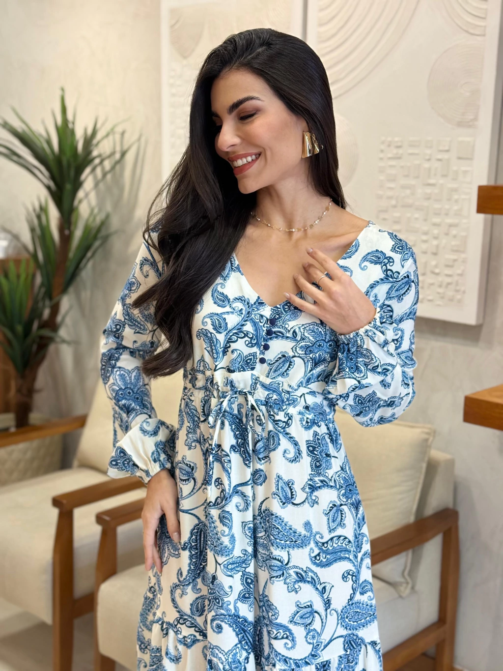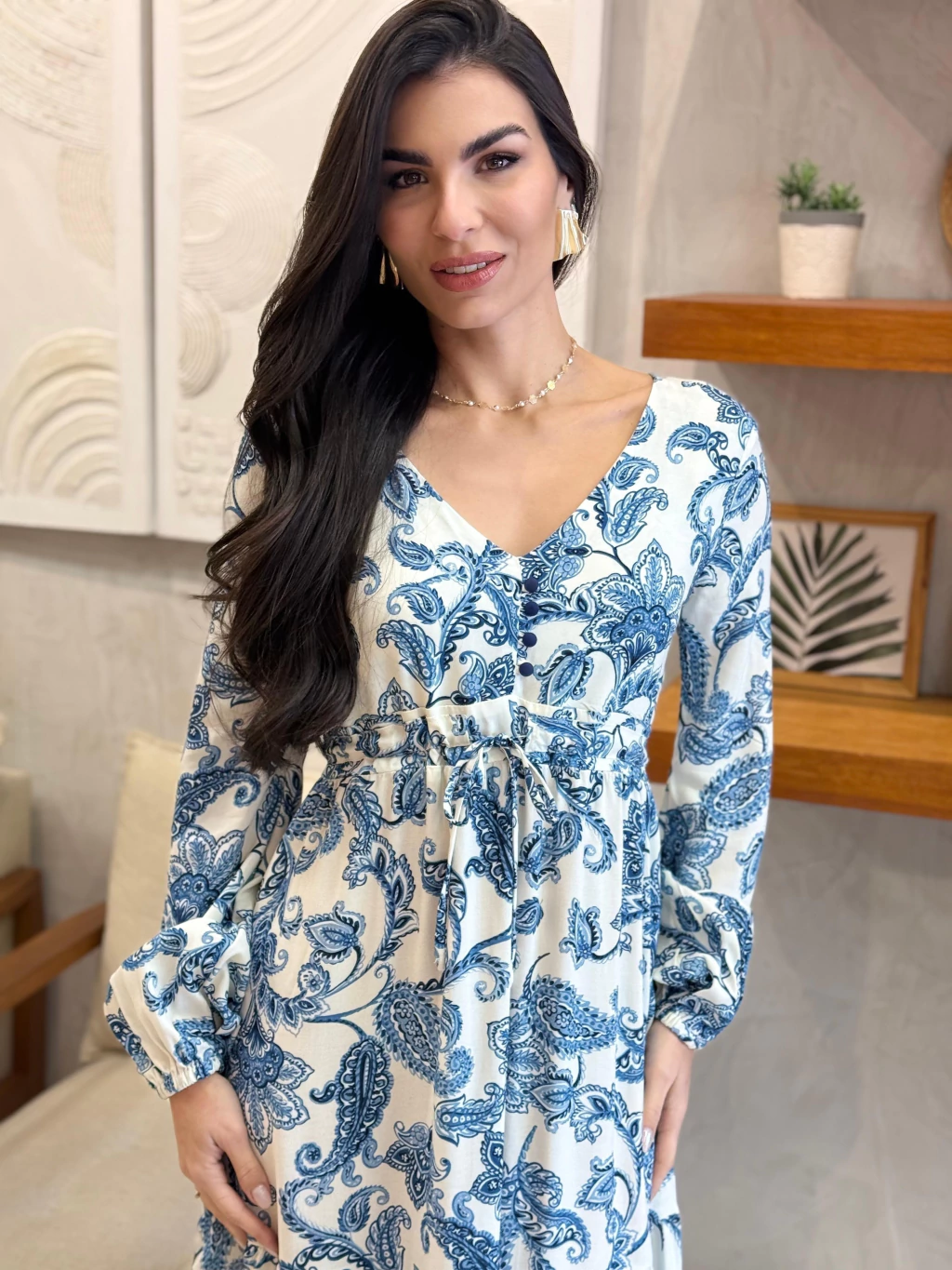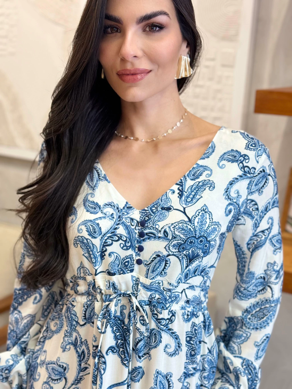 Observação: Por se tratar de um tecido natural (linho ou viscose), a peça pode apresentar leve encolhimento no comprimento após a primeira lavagem.