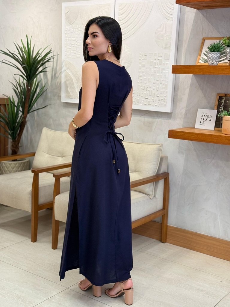 Observação: Por se tratar de um tecido natural (linho ou viscose), a peça pode apresentar leve encolhimento no comprimento após a primeira lavagem.