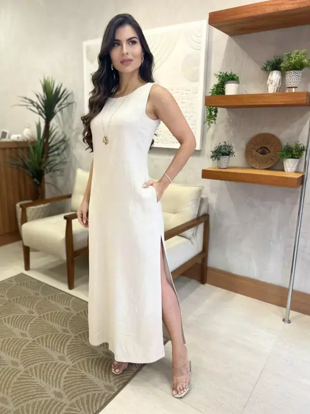 Observação: Por se tratar de um tecido natural (linho ou viscose), a peça pode apresentar leve encolhimento no comprimento após a primeira lavagem.