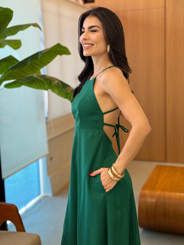 Observação: Por se tratar de um tecido natural (linho ou viscose), a peça pode apresentar leve encolhimento no comprimento após a primeira lavagem.